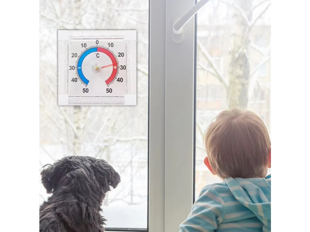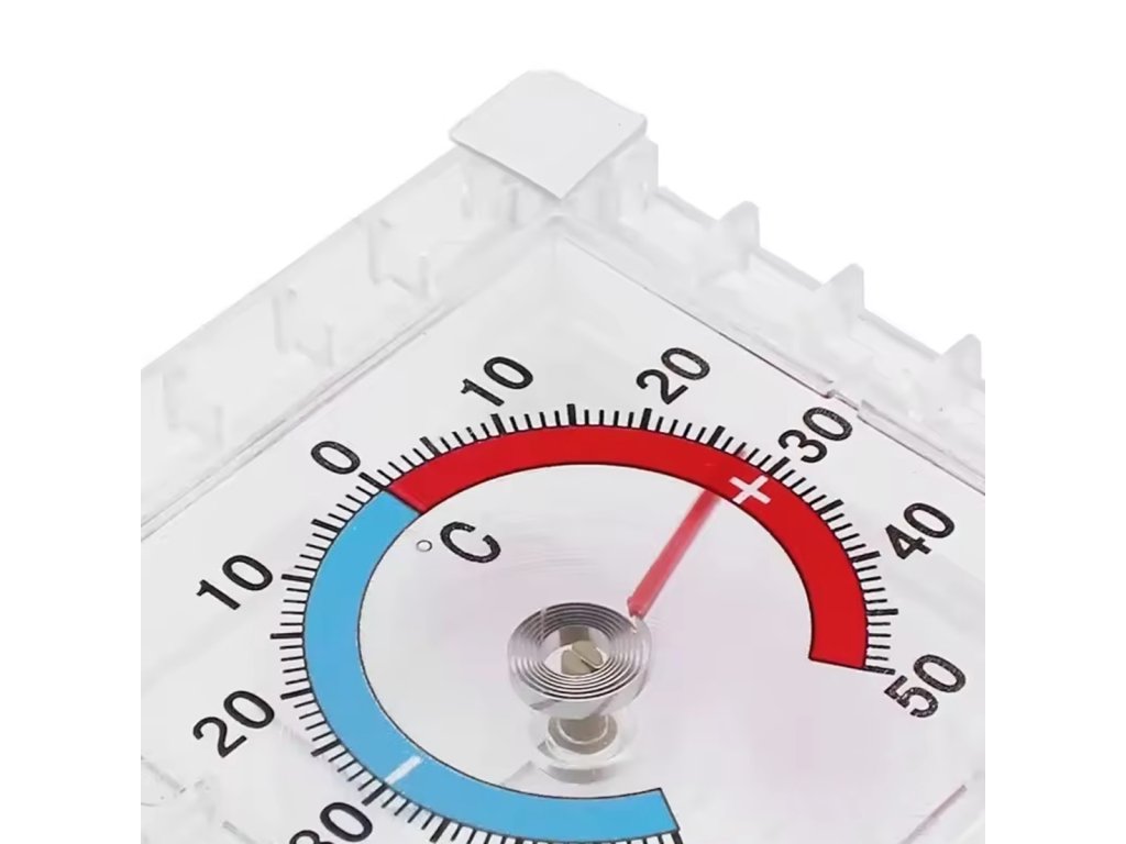 Kompaktní, analogový venkovní teploměr. Určeno pro montáž na sklo pomocí samolepicí pásky (na okraje pouzdra). Klasický design a přehledná stupnice usnadňují odečítání teploty ve stupních Celsia.