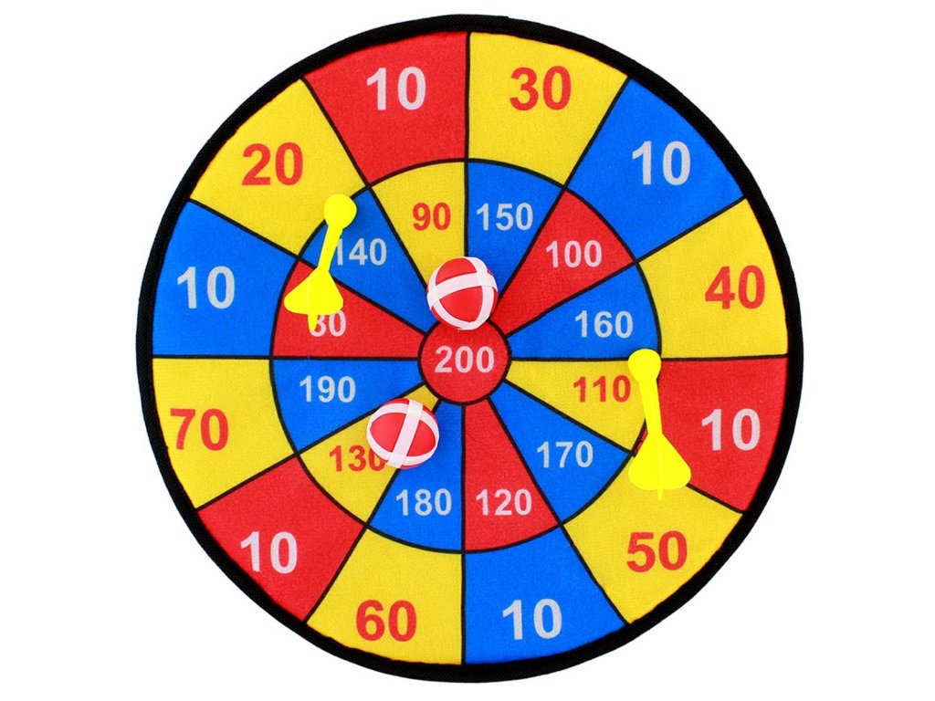 Klasické terč na šipky - s míčky a lety na suchý zip. Skvělá a bezpečná hračka pro nejmenší! Dokonale rozvíjí zručnost a cíl dítěte. Díky použití měkkých materiálů je zcela bezpečný!