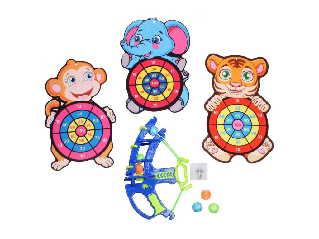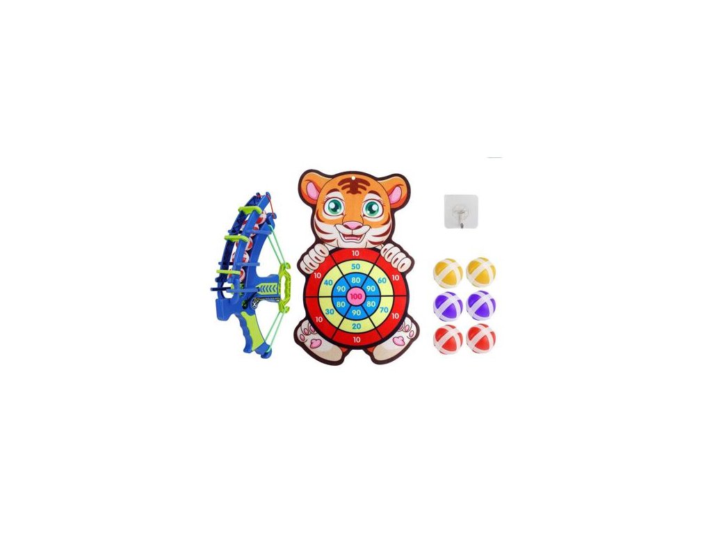Pokud přemýšlíte, jak zabavit své děti na dlouhý čas, pak bude sada Merco Target Tiger tou pravou volbou. Děti si s ní budou hrát na lukostřelce a soutěžit mezi sebou v přesnosti střelby na terč ve tvaru tygříka, přitom ale bezpečně. Místo šípů totiž budou z plastového luku střílet lehké plastové kuličky pokryté páskami se suchým zipem, které se po zásahu přilepí k látkovému terči. Odpadá starost s opakovaným nabíjením, protože do zásobníku snadno předem připravíte až 6 kuliček, které pak můžete střílet rychle jednu po druhé. Následně už jen stačí odečíst body z látkového terče a vyhlásit vítěze. Se sadou Merco Target Tiger se zaručeně nudit nebudete. Jak na to? 1. Přilepte na skříňku, dveře, nebo jiný hladký a čistý povrch háček se samolepicím povrchem. 2. Na háček zavěste látkový terč. 3. Do konstrukce v horní části luku vložte 6 plastových míčků a zajistěte gumičkou. 4. Zatáhněte za táhlo uprostřed, čímž uvolníte jeden míček. Zamiřte na terč, napněte tětivu, pusťte a střílejte. Upozornění: Výrobek není vhodný pro děti do 6 let! Vždy používejte pod dohledem dospělé osoby. Obsah balení: - 1 x plastový luk (plast ABS) 21 x 32 x 8 cm (šířka x výška x tloušťka) - 1 x látkový terč 24 x 40 cm (šířka x výška) - 1 x samolepicí háček - 6 x plastový míček s průměrem 3,5 cm Materiál: Plast ABS, látka, gumaDoplňkové parametry