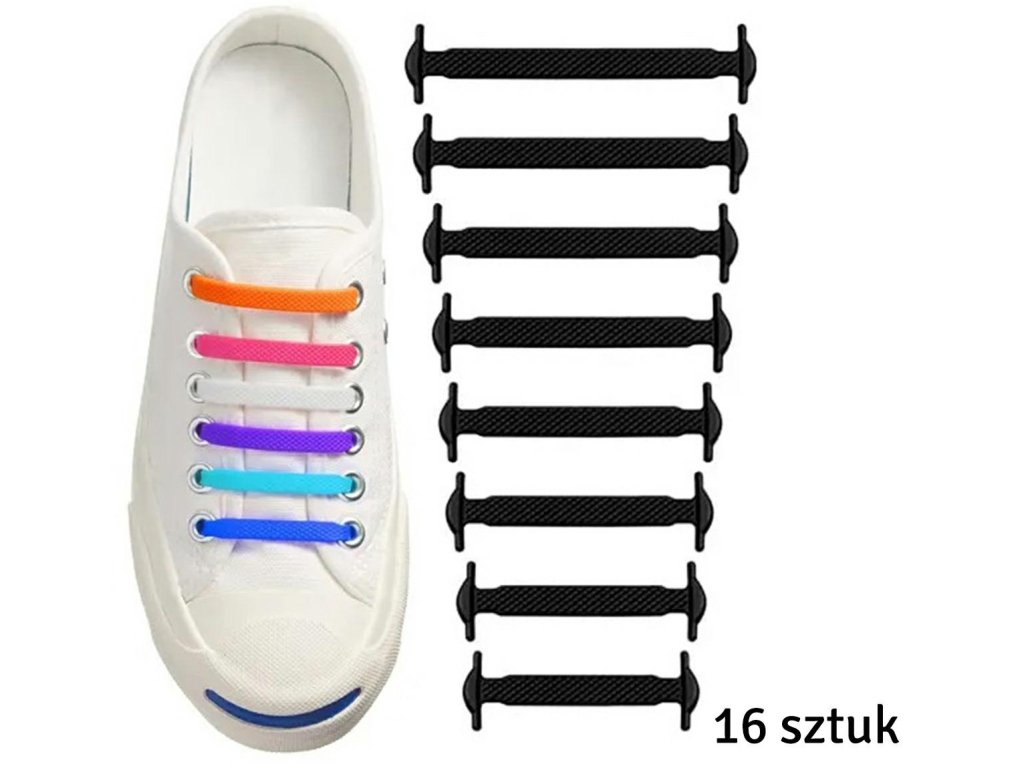 Silikonové tkaničky bez zavazování - 16 kusů. Různé délky a vysoká elasticita umožňují pohodlné přizpůsobení tkaniček konkrétní obuvi. Velké klipy na obou koncích zaručují bezpečné upevnění bez rizika rozvázání. Ideální pro dětskou obuv.