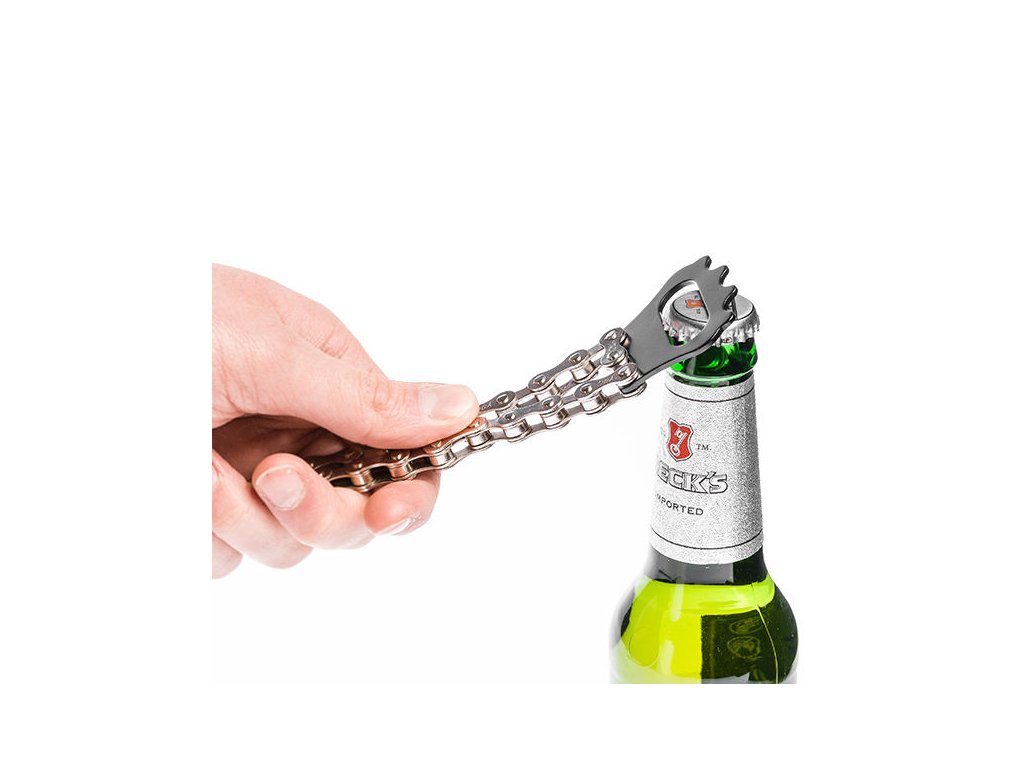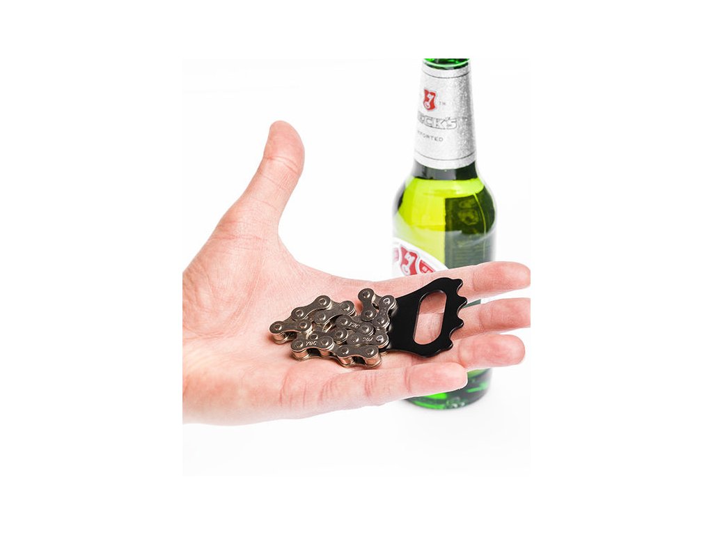 Pěkný a praktický otvírák na kola ve tvaru řetězu pro všechny nadšence všech dvou kol a nejen je. Vhodný jako dárek. Ručně vyráběný, eloxovaná hliníková hlava.