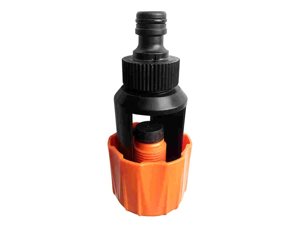 Standardní připojení na kohoutek pro zahradní hadici. Umožňuje připojení hadice k zahradnímu kohoutku. Velmi jednoduchá montáž a obsluha vyžadující pouze následné připojení hadice a puštění vody z kohoutku. Má možnost připojit hadici s 1/2'' a 3,4'' koncovkou.