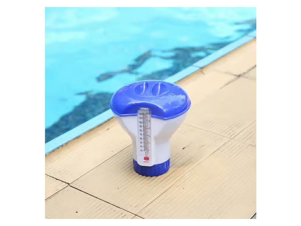 Bazénový plovák s dávkovačem chloru a teploměrem. Tento plovák výrazně usnadňuje udržování čisté vody ve vašem zahradním bazénu. Jednoduše vložte chlorovou tabletu do plováku a zašroubujte víko. Produkt je vybaven teploměrem pro přesné měření teploty vody.