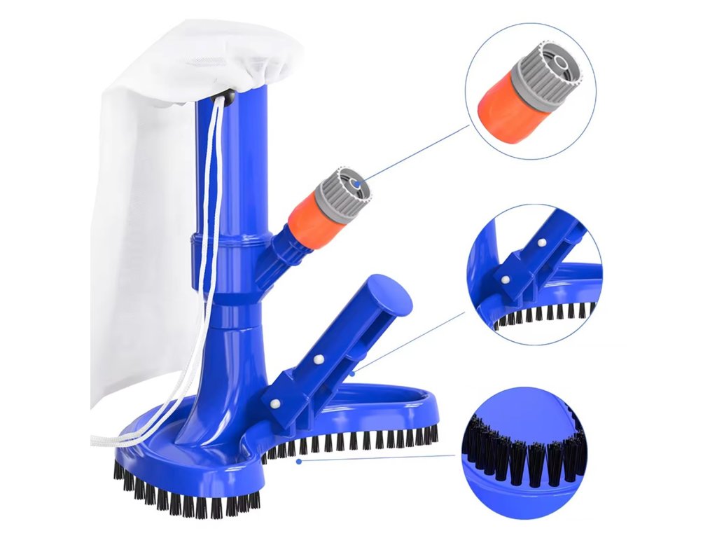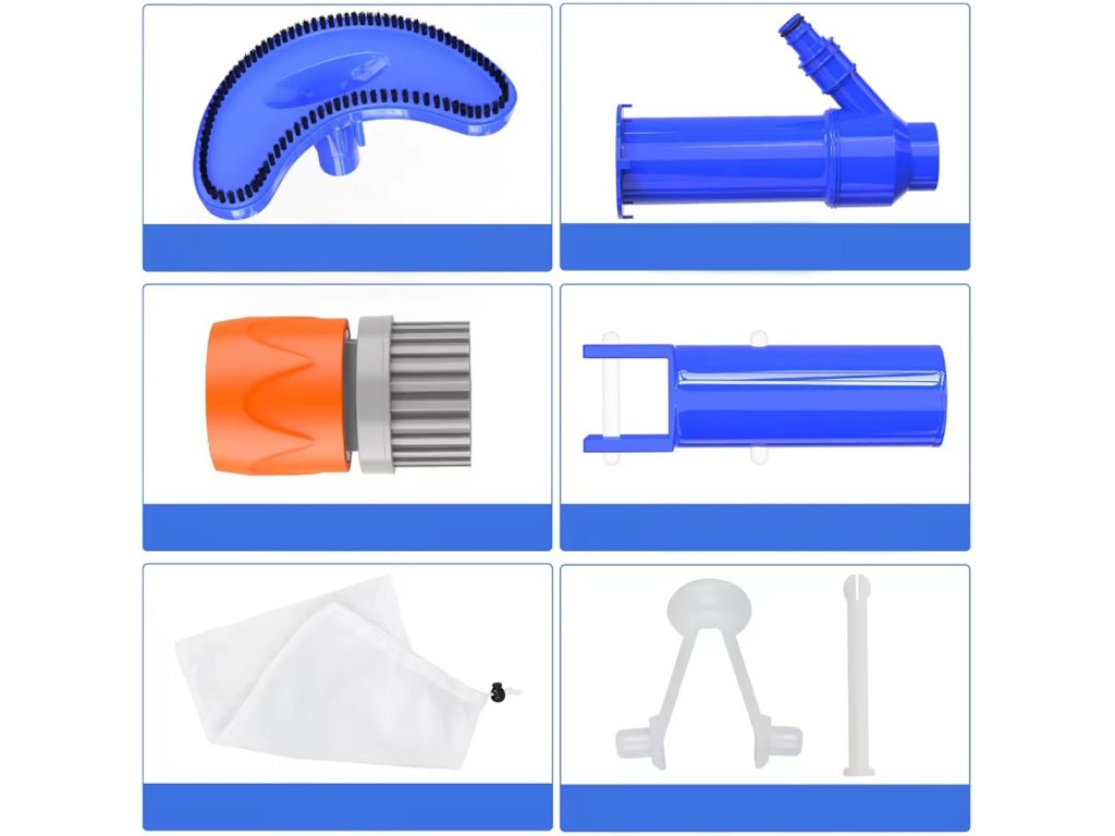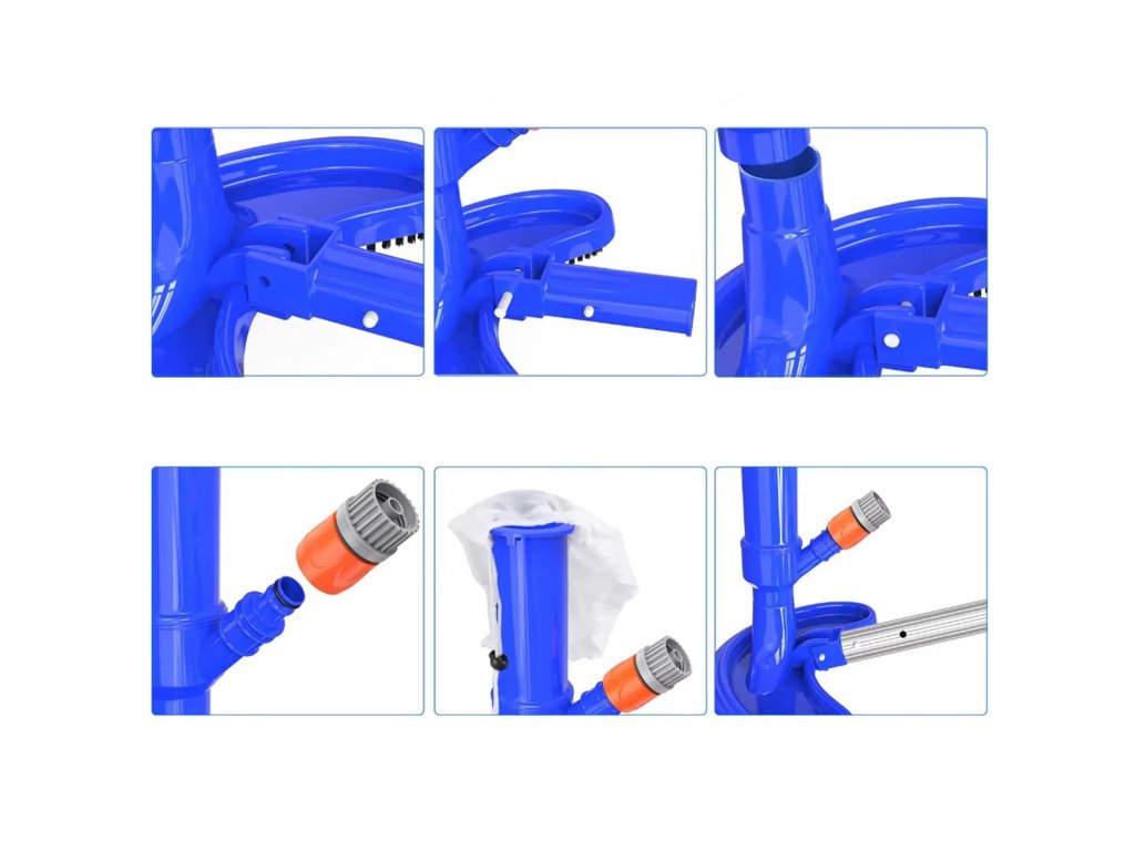 Kompaktní vysavač na dno bazénů a jezírek. Inovativní design, který umožňuje odstranění nečistot ze dna nádrží pomocí tlaku vody. Veškerý odpad je nasáván do prostorného, opakovaně použitelného vaku. Sada obsahuje veškeré potřebné příslušenství jako montážní držáky a rychlospojky.