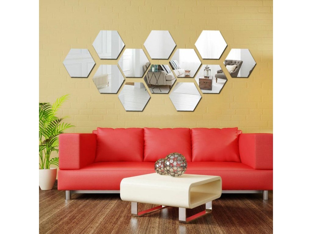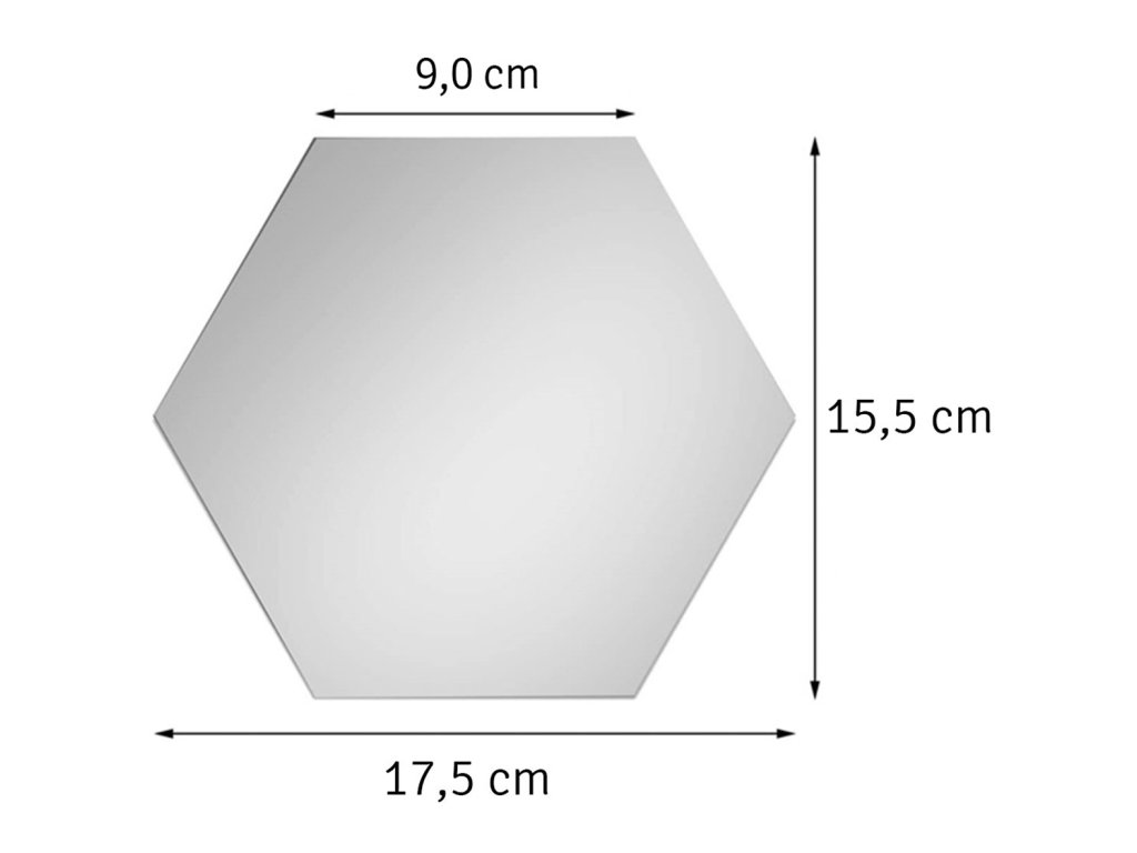 Sada dekorativních nástěnných šestiúhelníkových panelů - 12 akrylových zrcadel o rozměrech 17,5 cm x 15,5 cm. Skvělý způsob, jak využít prázdnou zeď. Jako optické zvětšení prostoru skvěle poslouží zrcadlo. Dobře se bude hodit do předsíně jako nástavec na botník nebo jako estetický detail v koupelně. Šestiúhelníkový tvar umožňuje snadné sesazení samolepek k sobě a vytvoření jednotné mozaiky.