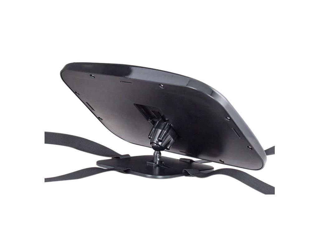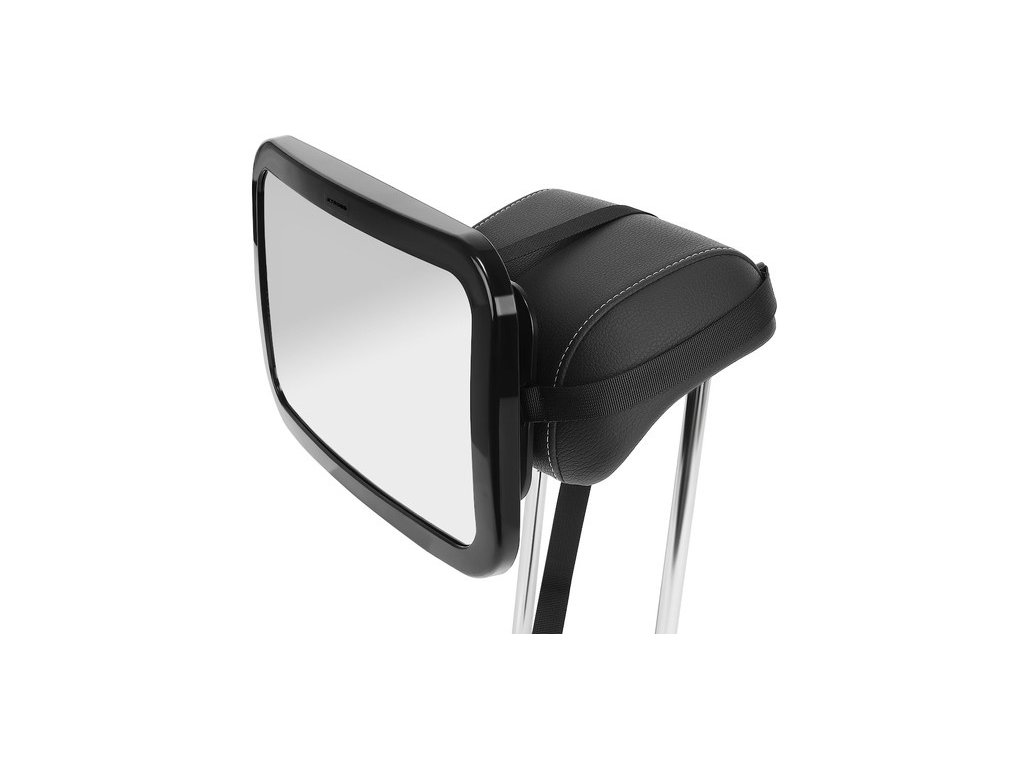- 4 PROUHY – NÁŠ MODEL má 4 pruhy namontované vertikálně a horizontálně, které stabilně drží opěrku hlavy a neuvolní se; neexistuje možnost, že by zrcadlo dítěti sklouzlo a spadlo! Popruhy se připevňují pomocí přezek a navíc mají nastavitelné , díky čemuž padnou každému modelu opěrky hlavy bez ohledu na značku a velikost vozu. Základna, která se montuje na opěrku hlavy má protiskluzový povrch , který navíc chrání zrcadlo před pohybem.